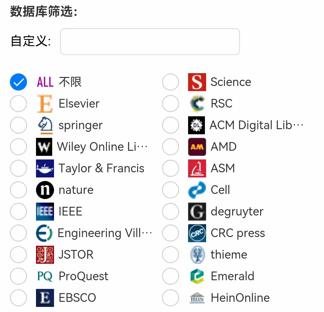 1.海量资源:平台整合Elsevier、Springer、Taylor & Francis、nature、IEEE、Science、RSC、Cell等全球10亿+条学术资源,开放资源(OA)可直接下载全文,无法下载的文献可通过平台发起文献传递申请,10分钟内返回平台。